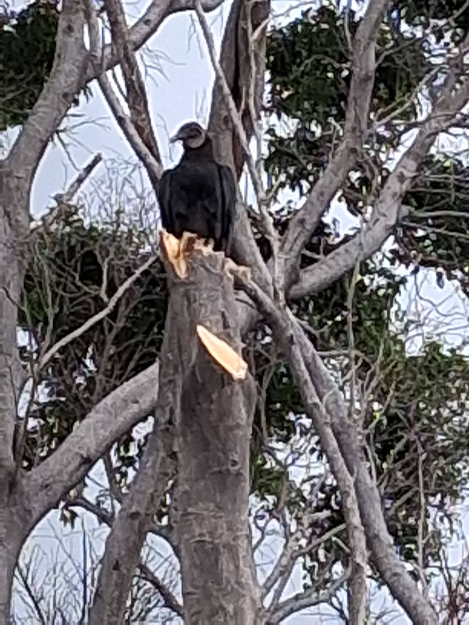 Jane invited us over to see her home at that point, so we went over for the tour and spotted this guy high in a tree next door and right overhead. He was in no rush to leave, either. (Maybe he smelled the quiche and thought if he hung around long enough we’d throw him some.  Nope.  We ate every scrumptuous bite! My God, what flavor.  Marilyn is an amazing cook!!!!)