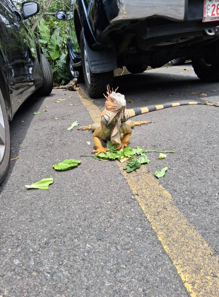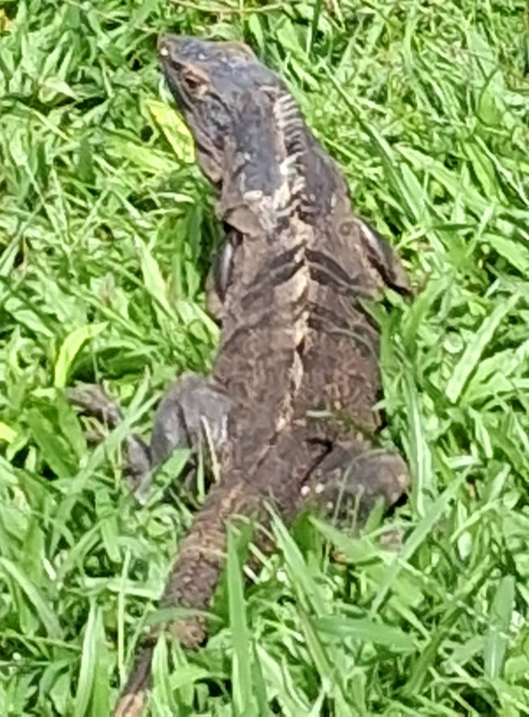 Early this morning before coming to get me, Marianela had gone to the feria and spotted one of their biggest wild iguanas grazing in a tree, so she snapped this image of it: