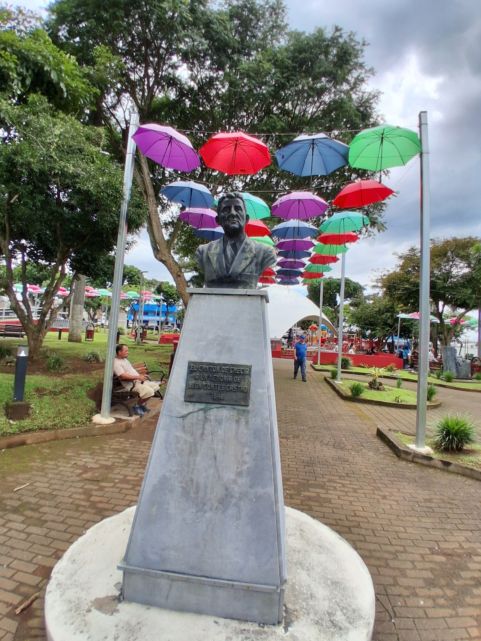 I finished shopping in record time (only had four items on my shopping list), so I went to Central Park there in Grecia to sit on some of the new benches and vegetate until it was time to head for Mas Q Sabor. Jon and his passsengers arrived shortly after we did.