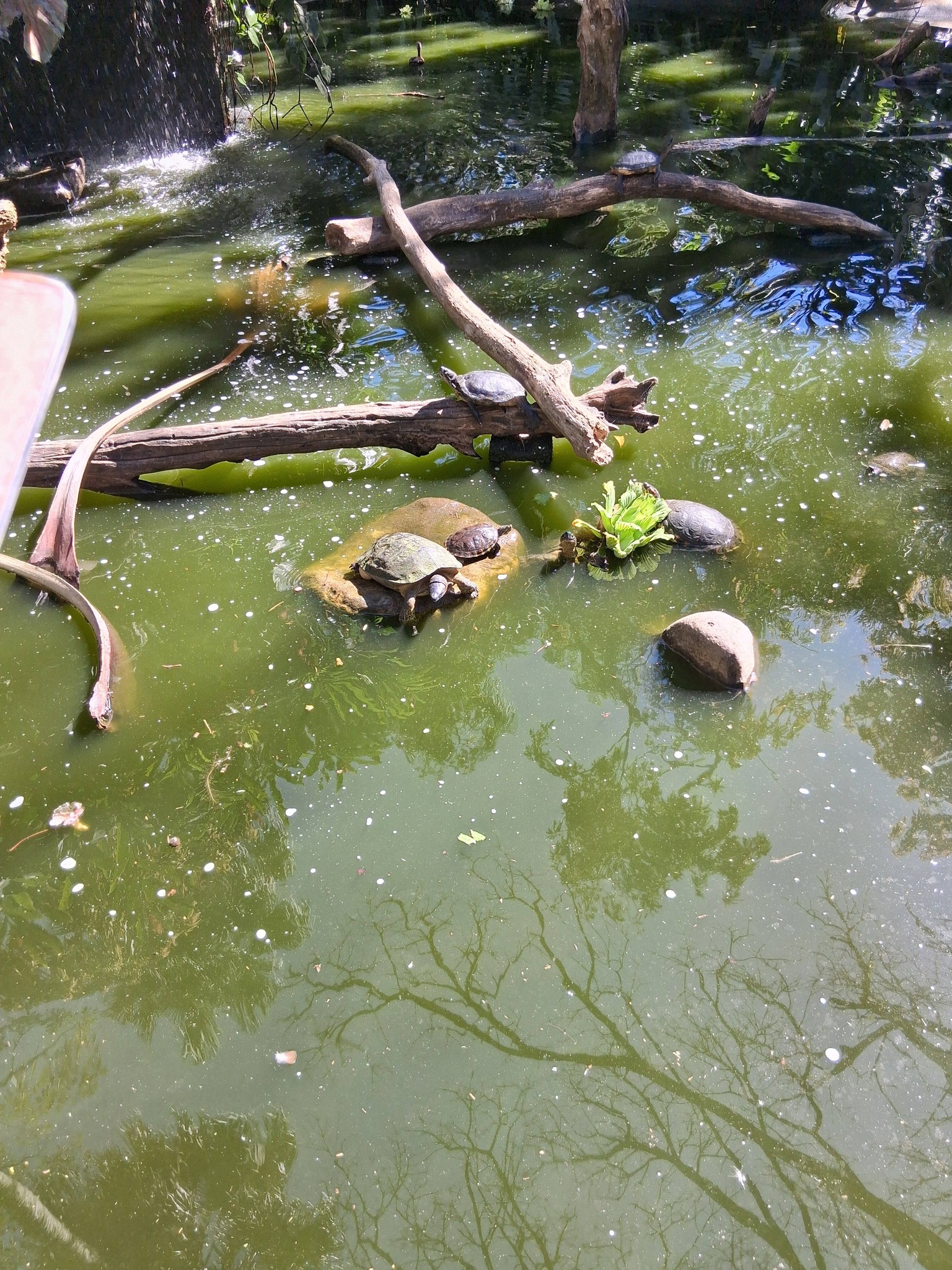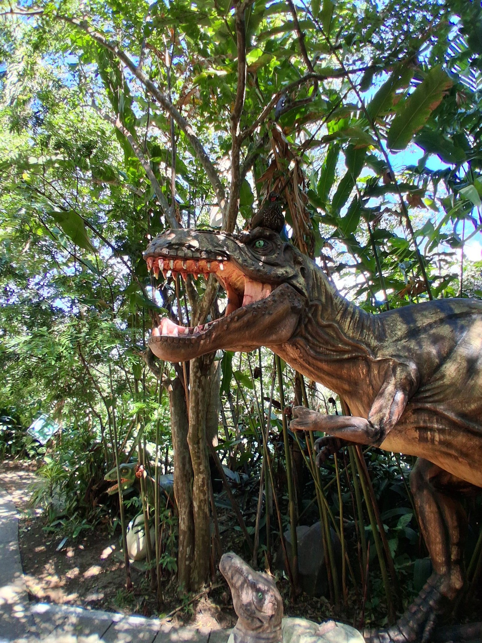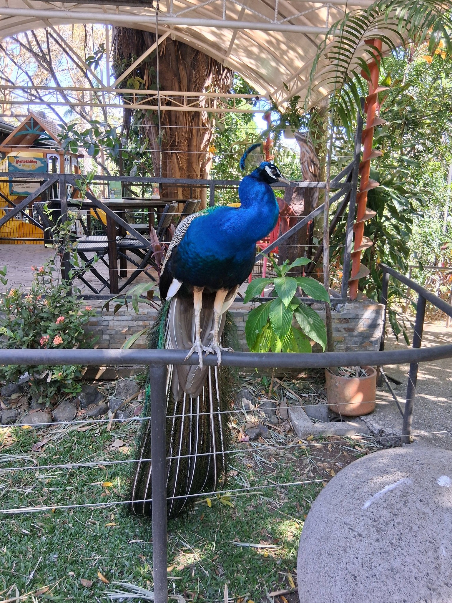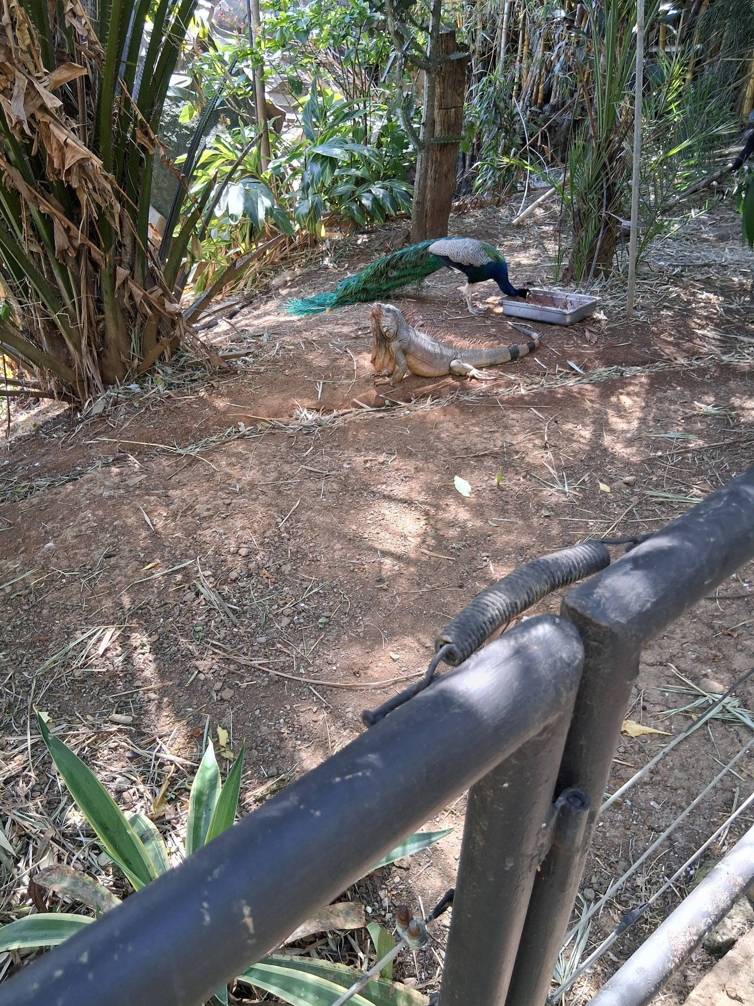 We paid and went in, took a look at the layout of the place and Jon led the way. Cicadas, bird calls, coyote songs and peacock screams accompanied us along the route, and we had to watch where we walked because here and there large iguanas lay sunning themselves on the walkways at our feet. At one point, Lisa was filming something and I had to let her know a big iguana had joined her so she wouldn’t accidentally step sideways onto it when she moved again.