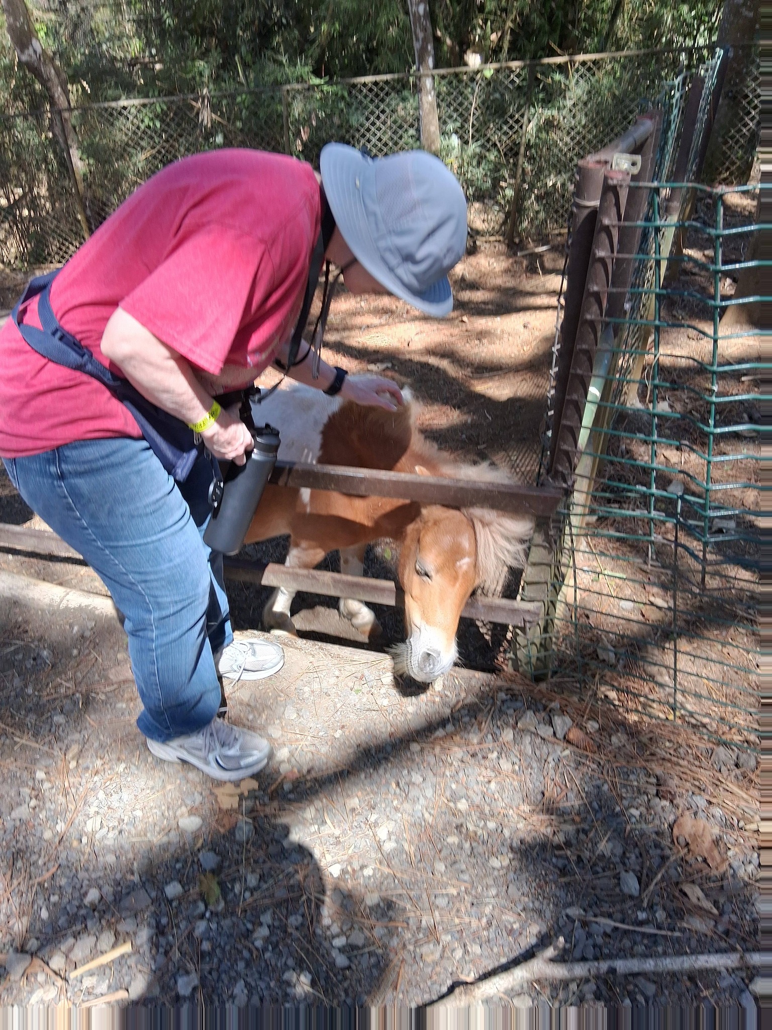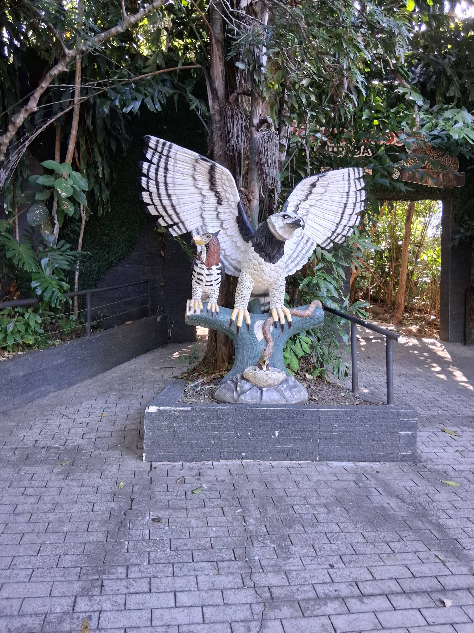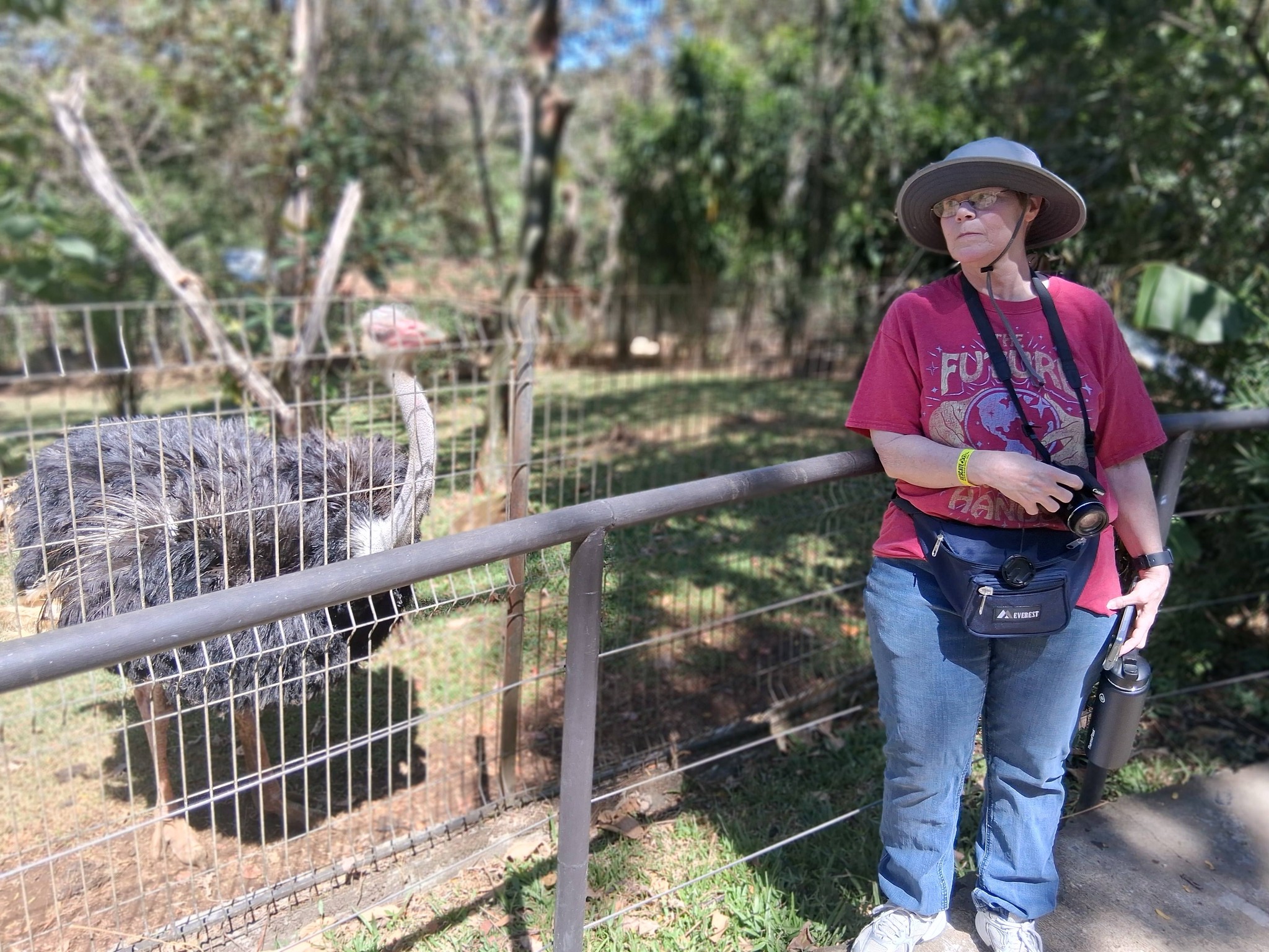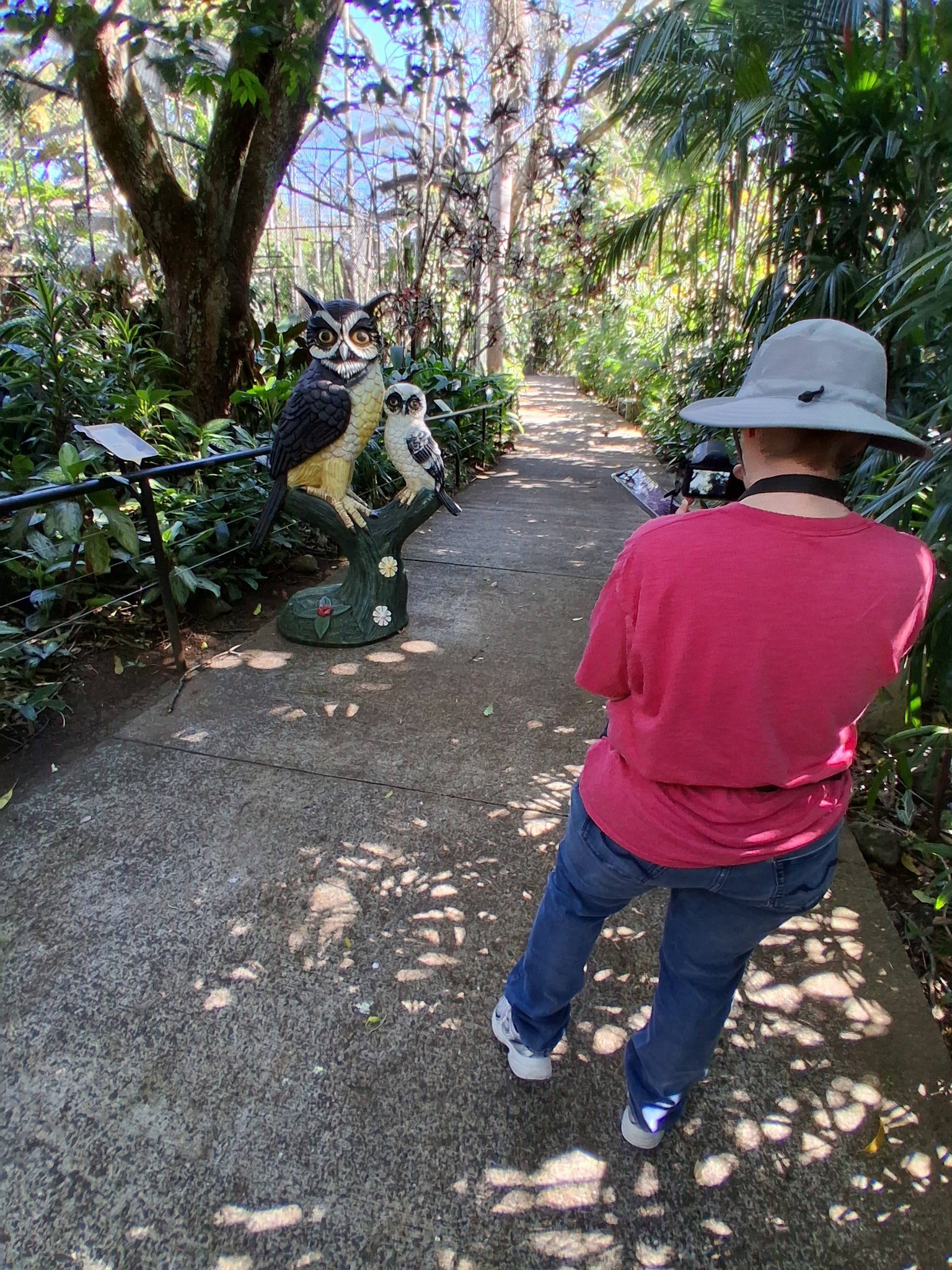 When we got to the rescue center, we took our first pix in the parking lot in front of an eagle and hawk sculpture and then walked down the path into the place.