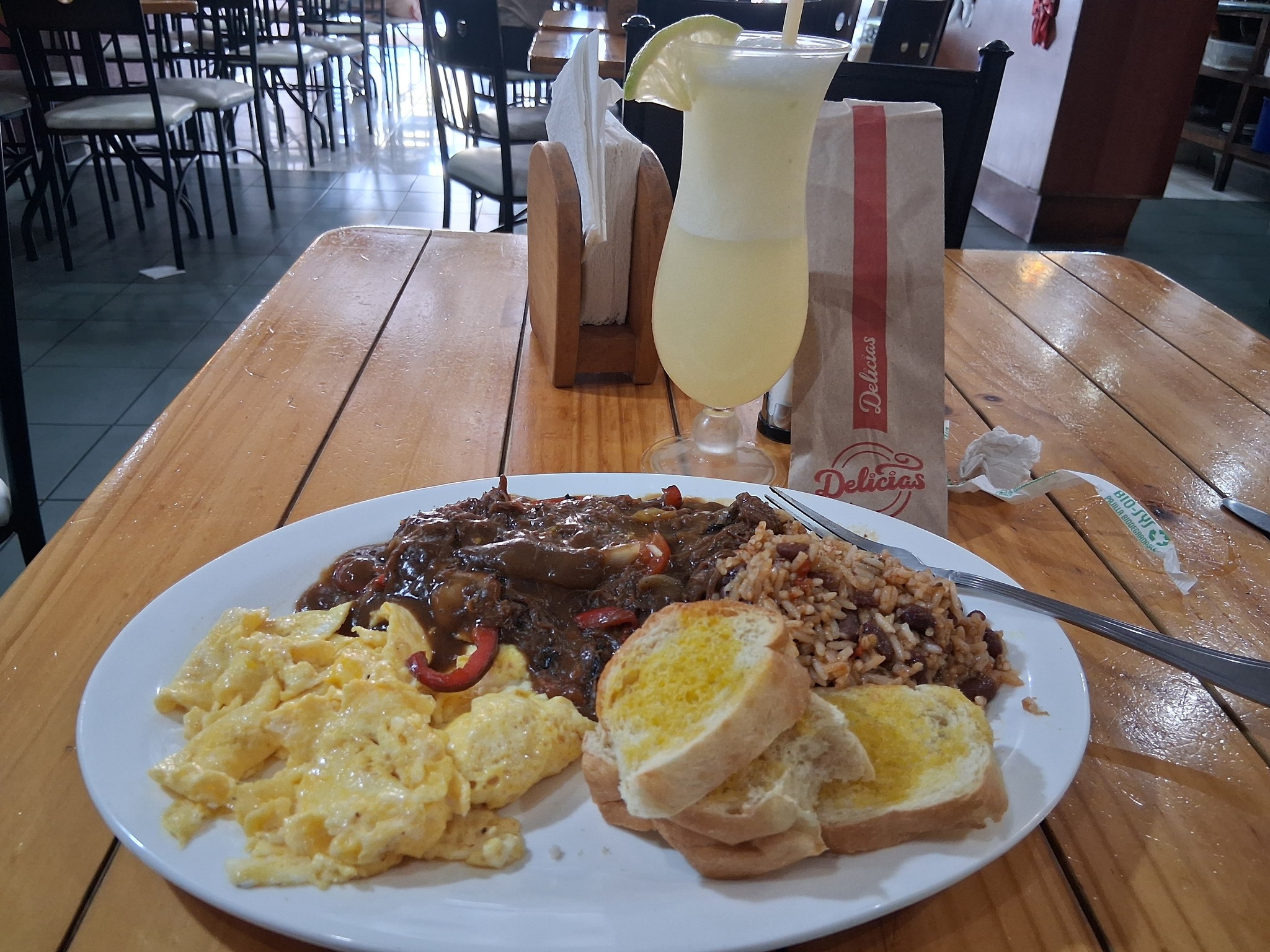 Then I hopped back across the street again to have desayuno at Cafe Delicias. Here’s a picture of what I had:
