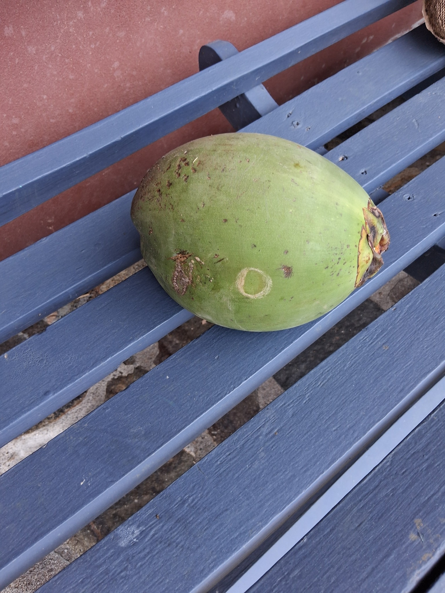 Someone Left Two Coconuts on the setee outside my hotel room here