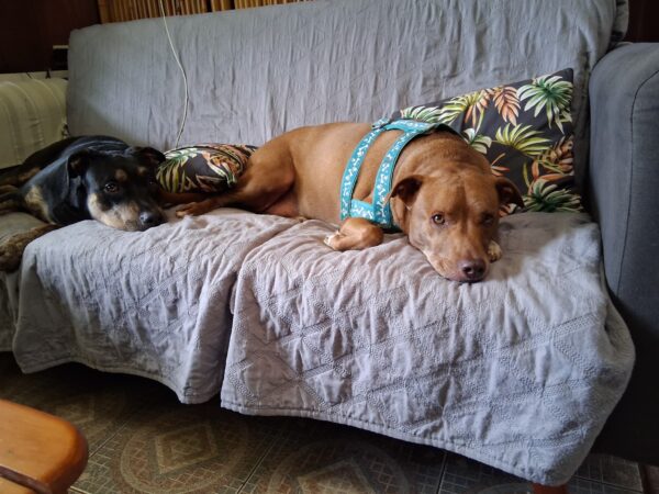 I’m at Posada Mimosa again today (Jon and Francisco’s home) dog-sitting Alice and Thio. I arrived bearing bribes (aka treats) and almost immediately took up residence on “their” couch while Jon and Francisco finished eating their breakfast.