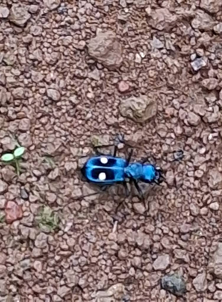 Since I don’t venture out after sunset, I’m sure I’m not where Costa Rica insects are when they’re most active . But, so far — during daylight hours when I’m up, out, and active — I have seen exactly one half-thumb sized cockroach, exactly one very small, very gorgeous tiger beetle, exactly one dime-sized spider (image not shown), and streams of industrious leaf-cutter ants (at both elevations).