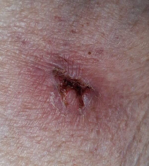 It looks almost like a butterfly now! But the scab will disappear in the next week or so. I expect the whole incident will fade into memory after that!