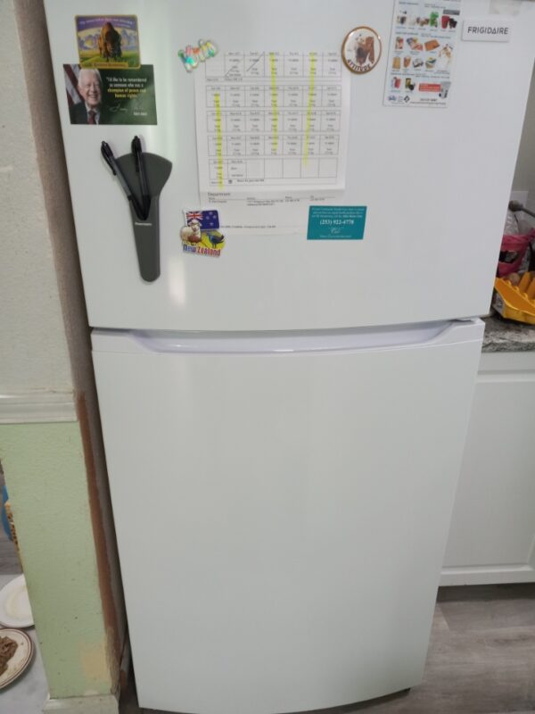 It’s a pretty fridge. It’s a bit little shorter than the other one was, but that’s good. It has no visible scratches or dings on the door, and just a little scratch and ding on one side. T’was a great buy for $399! Unscratched/dinged, it would have sold for over $800. I’m very satisfied both with it and with the company I bought it from, Albert Lee Appliances in Tacoma.