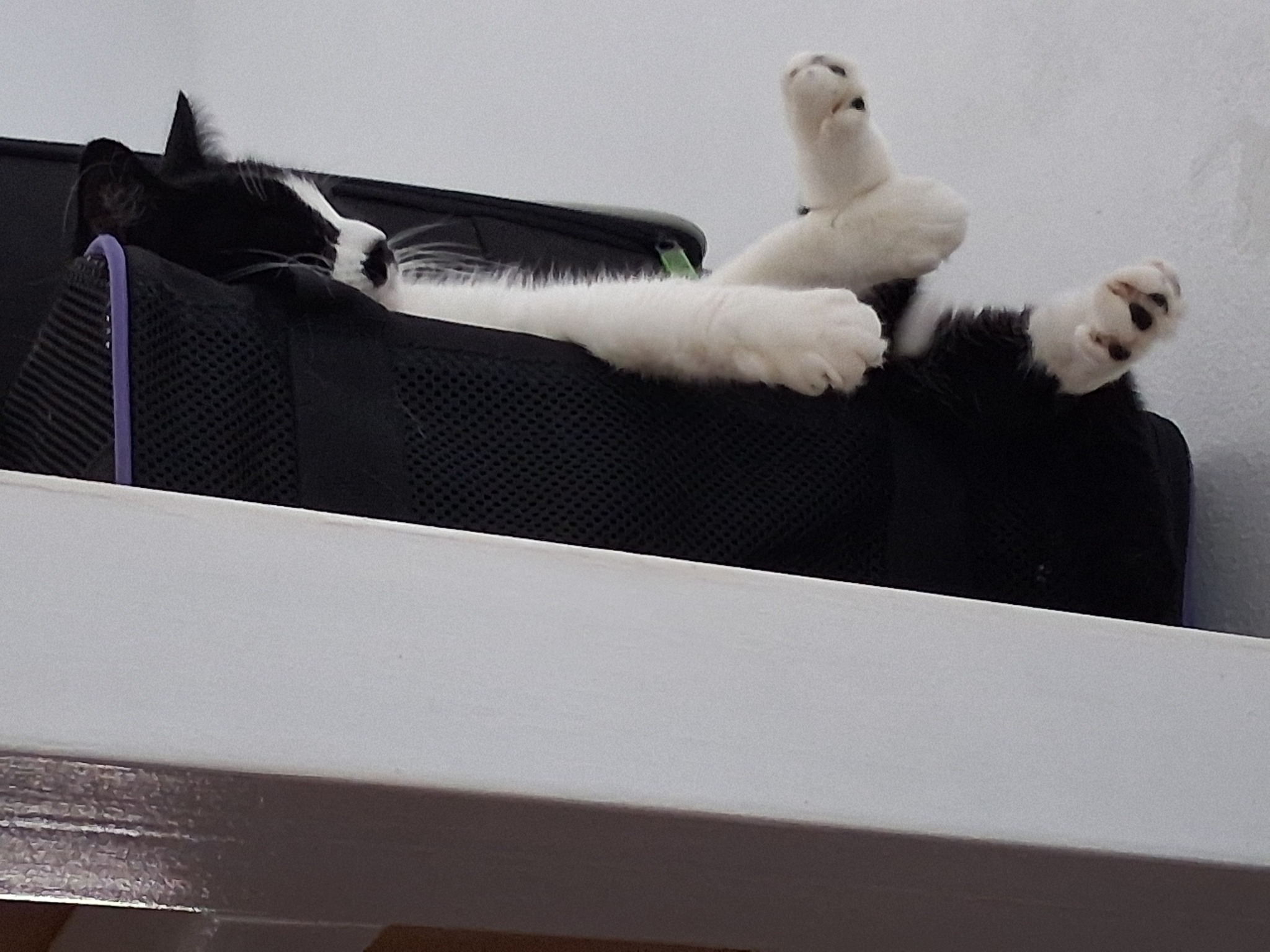 I got some super cute photos of Charli atop her pet carrier yesterday:
