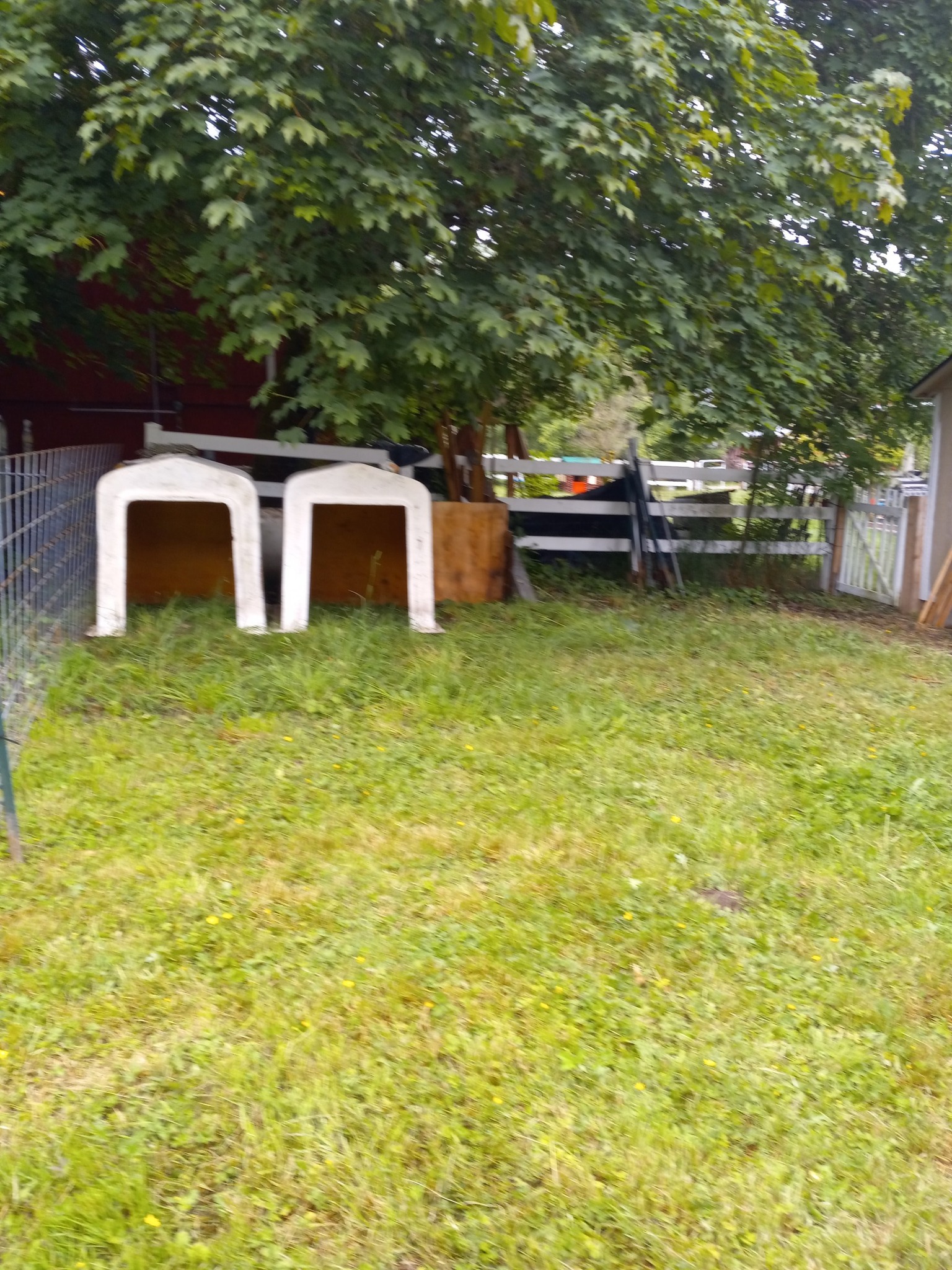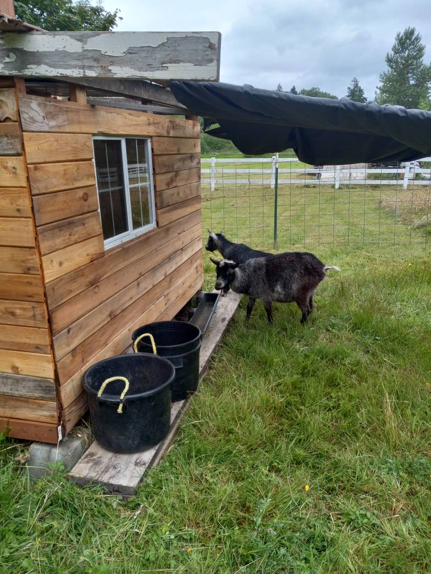 There’s also a smaller 32′ x 32′ enclosed space, which is where they’ll be held temporarily until she erects a fence to keep them away from her trees (the new owner has the materials already, so it will only be days). It has a cozy shed, plus their two calf sheds from here are within that space with all their familiar stuff: water barrel, feed trays, etc. They’ll recognize their stuff right away, which will help them settle in well and fast. I don’t anticipate any separation anxiety issues — except here at my end!  (I’ve had goats for 15 years, so it’s going to feel empty here for a while! I hope there are goats within walking distance of where I establish my home in Costa Rica!)