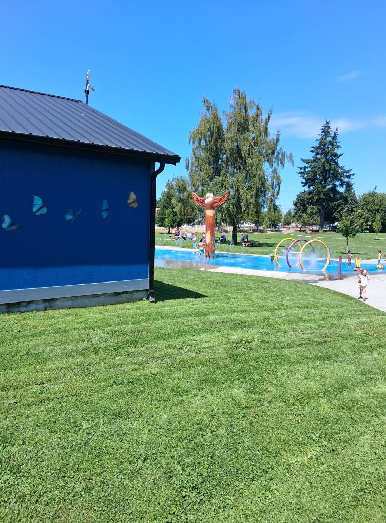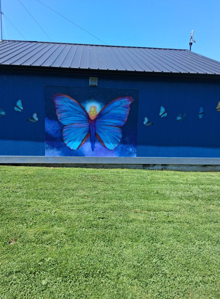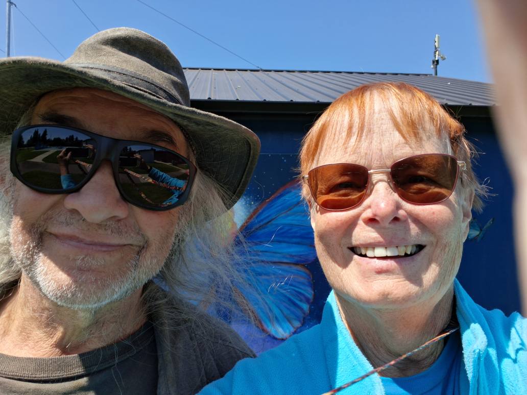 We were at the park for two hours. I hope this won’t be the last time I see him, but in case it is, I took a few photos of us together, one of the totem in the kids playground at the park, and another of a butterfly mural that is displayed on the side of one of the buildings.