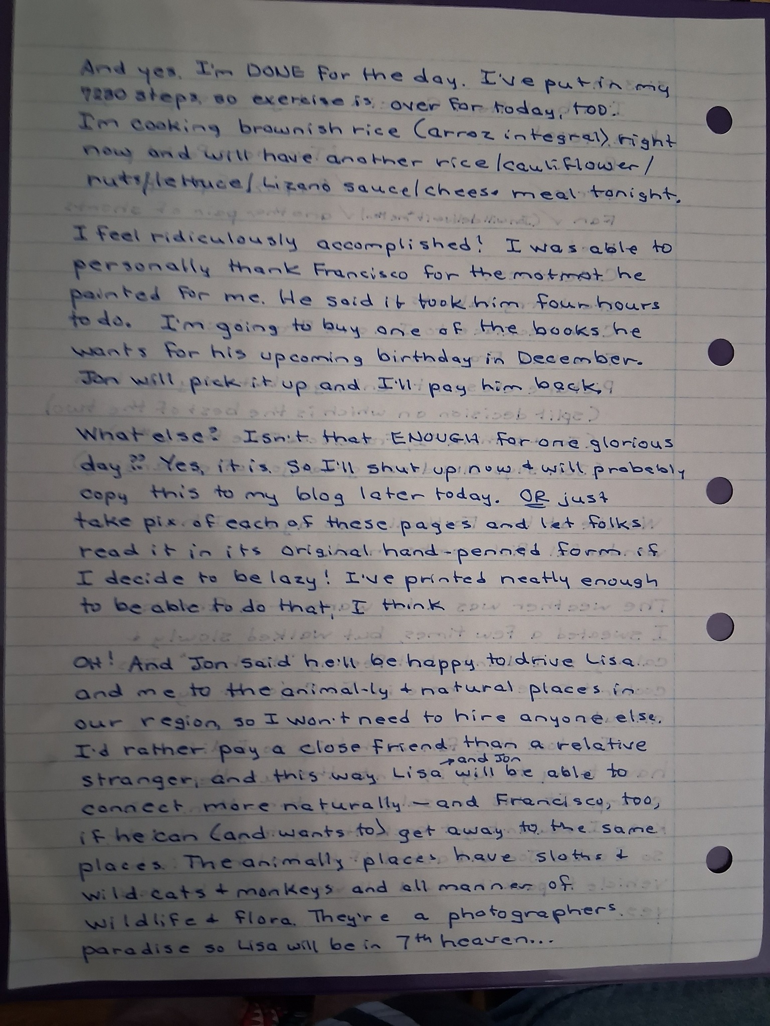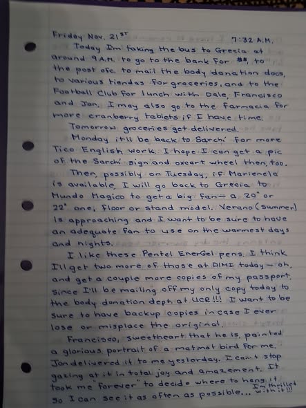 Here is today’s hand-written blog post. I’m too tired to type it out tonight.
