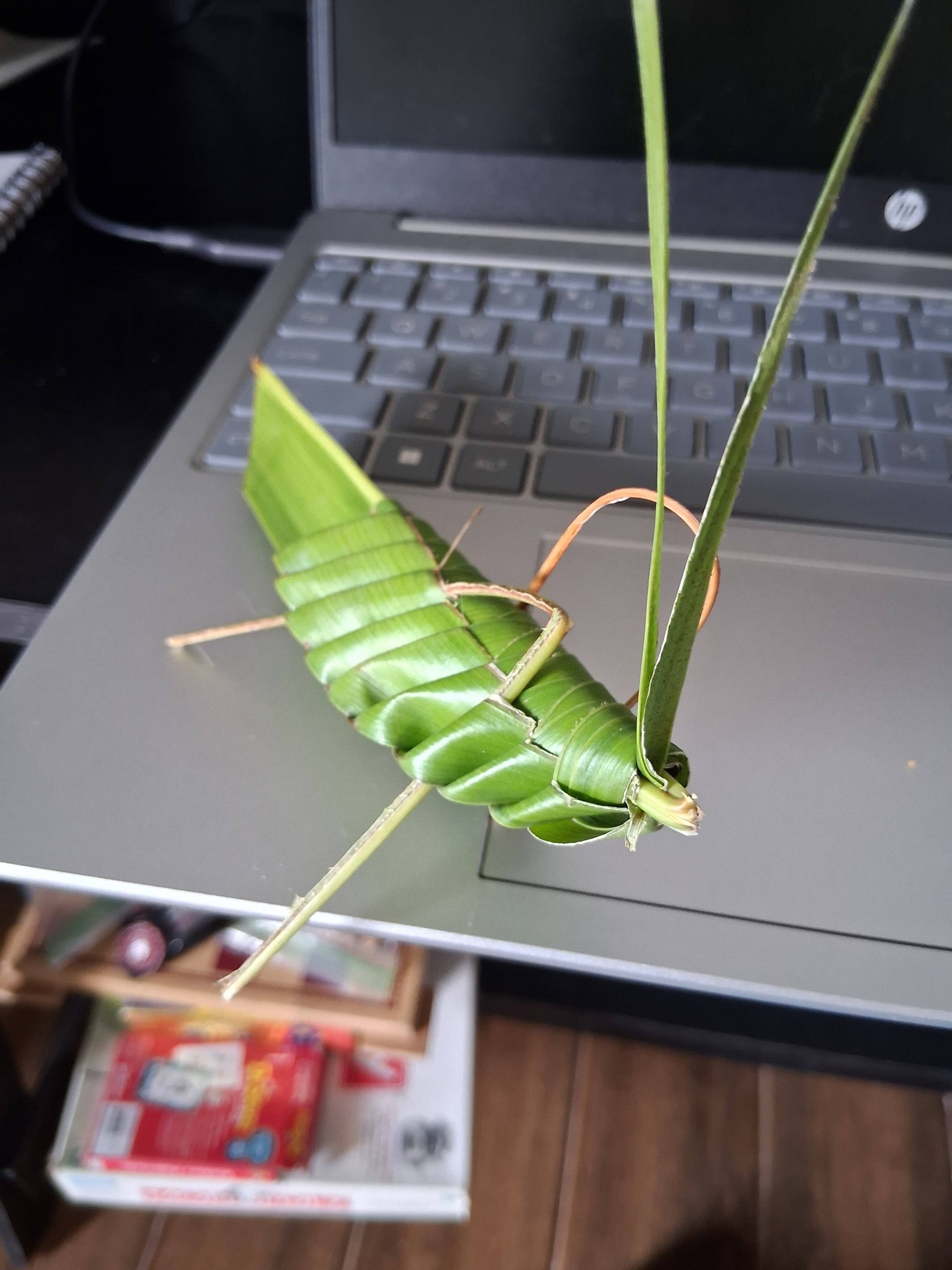 While I was in town, I twice passed by a local artisan who was offering to passersby his own hand-woven giant grasshopper art sculptures. I was fascinated.  They were intricately woven from palm fronds, so the supplies are free for him, the  only expense is the time it takes him to make them. I can’t even imagine how long it would take to make one, but it certainly wouldn’t be a quick little project!